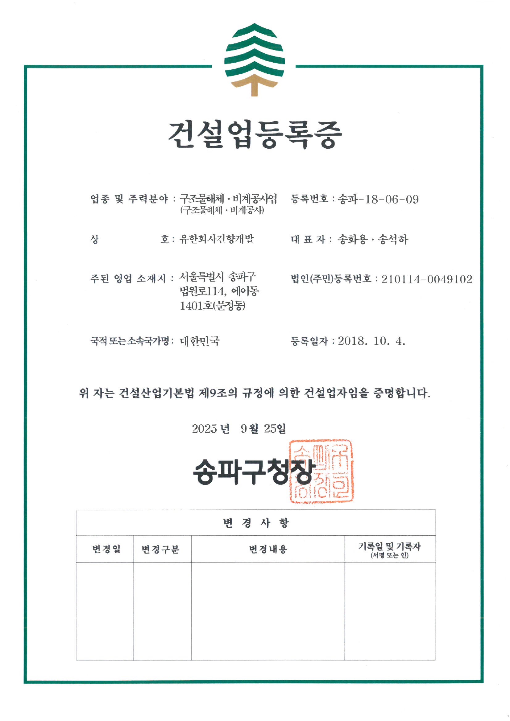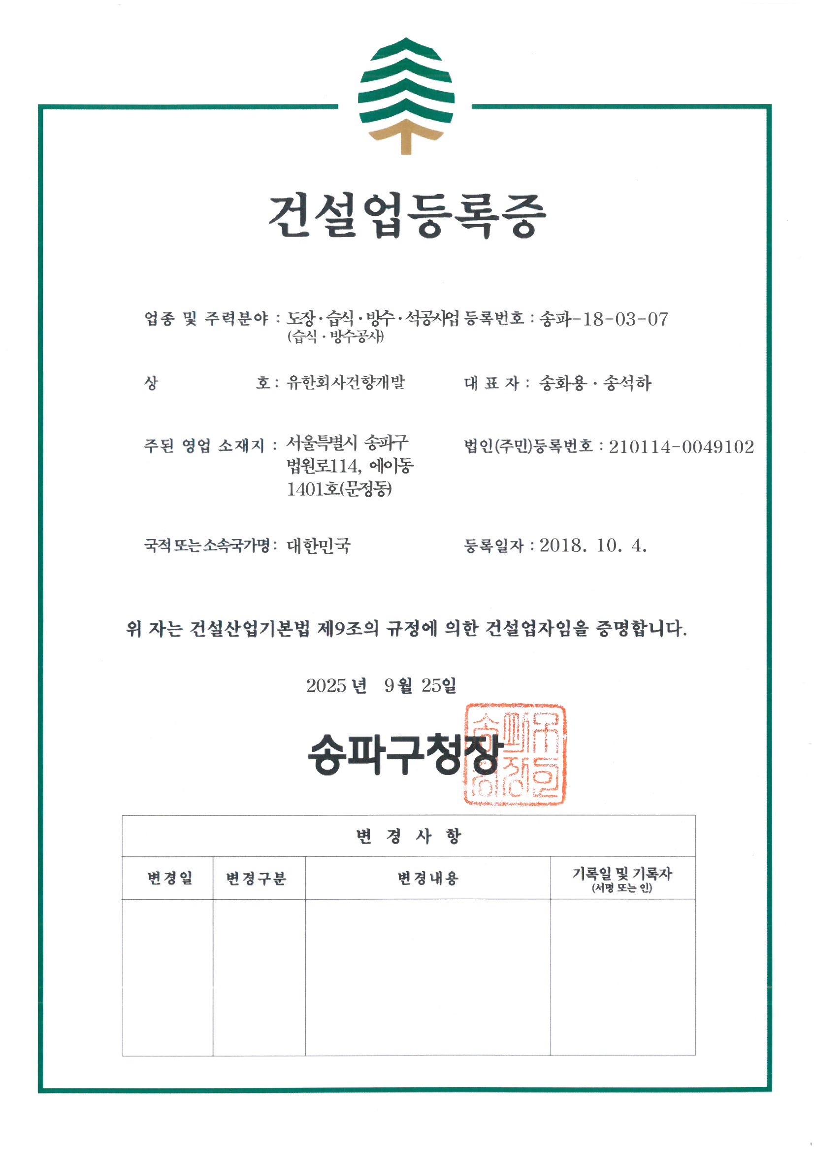 건설업 등록증